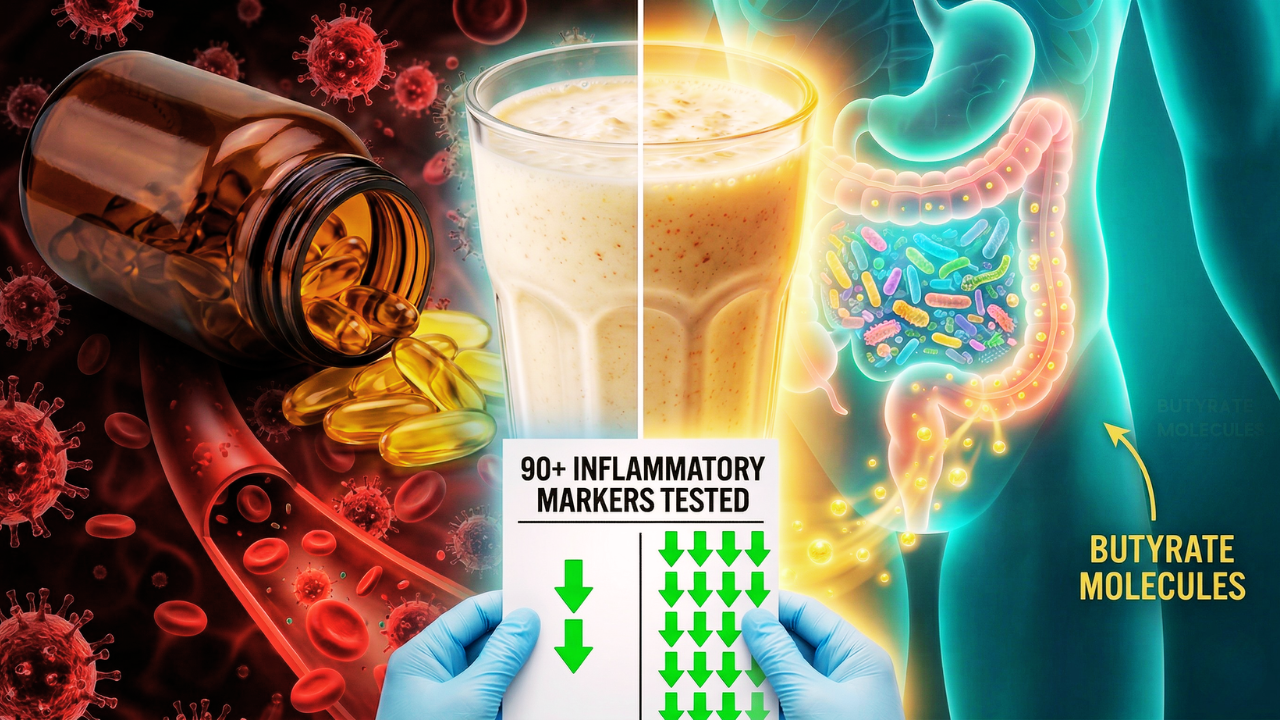 Everyone talks about omega-3 like it’s the last boss of inflammation. Fish oil versus algae, capsules versus liquids, people are stacking up on the grams per day. And yes, omega-3 absolutely reduces inflammation. This part is not controversial anymore. But what if I told you that there is something stronger, and maybe it’s not what you think? A recent study revealed something truly remarkable: a simple shake made with just two ingredients reduces inflammatory markers more than omega-3s. And not by a little, but by a lot.