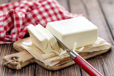 Butyric acid is also found in animal and plant food products in small amounts, compared to what is in your intestines. Butter, for example, is a good source of dietary butyrate, but it only contains a small fraction of what your body naturally makes.
