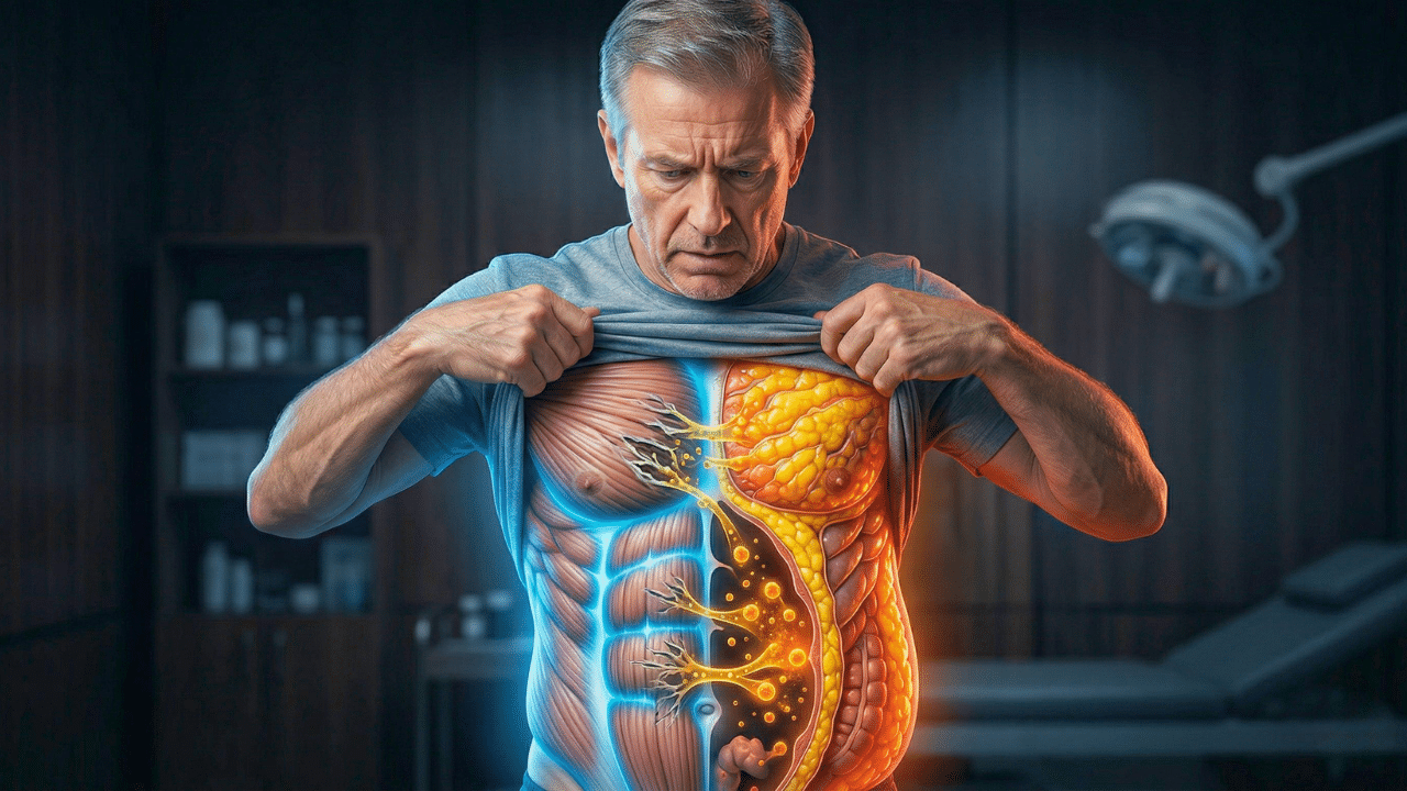 When excess belly fat Muscle loss When they occur together, they trigger a chronic inflammatory process that accelerates muscle breakdown and disrupts basic metabolic and immune functions. Excess fat may infiltrate muscle tissue, weakening its strength and quality. Combined, these effects are far more harmful than either condition alone and can significantly impact independence and quality of life in older adults.