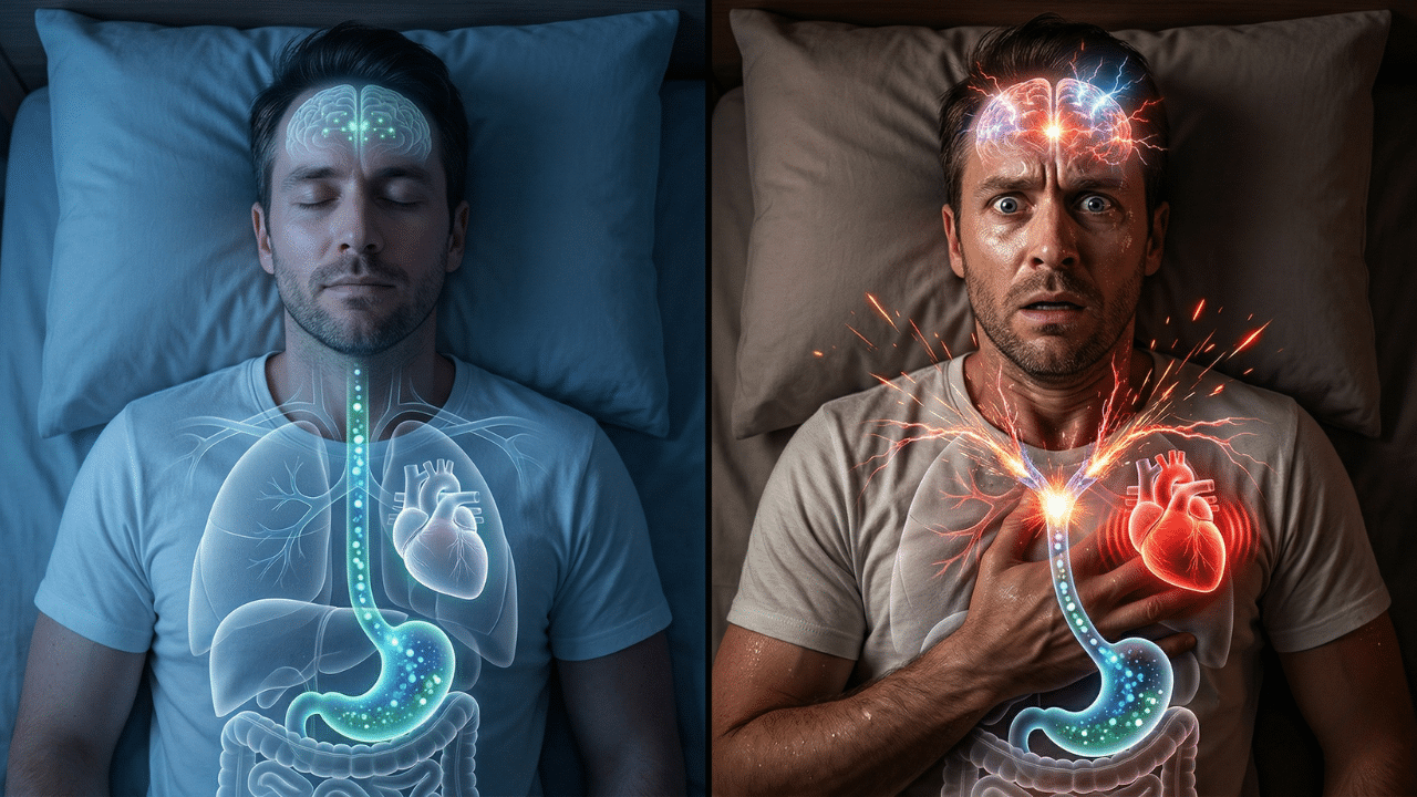 Here’s the problem: While you’re sleeping, this decline can be very rapid and steep. Your brain, which is constantly monitoring your fuel levels, panics. He spots the tank emptying at an alarming rate and shouts, “Emergency! We’re closing the door!” To prevent this, emergency services are called: a flood of adrenaline and cortisol. What do these stress hormones do? They wake you up with a racing heart, sweating, and a feeling of anxiety. It is not a psychological issue. It’s your body’s primary survival mechanism that tries to raise your blood sugar quickly to save your life.