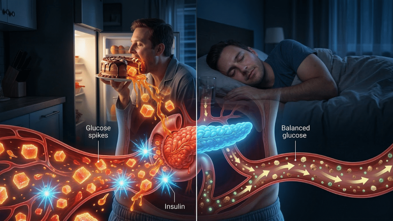 • Late-night drunkenness is a problem: Eating sugar or refined carbohydrates before bed forces the pancreas to produce insulin at rest, increasing the risk of insulin resistance over time.