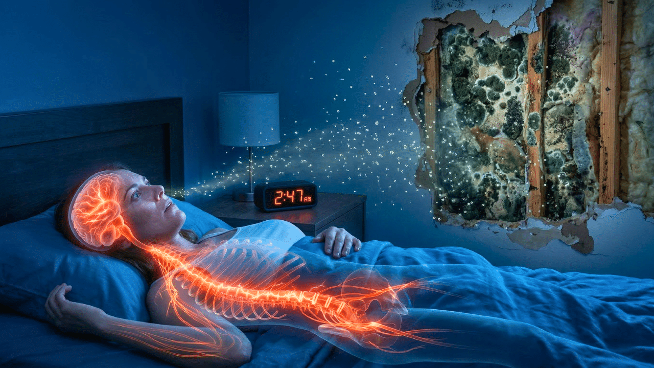 Do you feel exhausted all day long but find yourself wide awake the moment your head hits the pillow? Mold toxicity can throw your entire sleep-wake cycle into disarray. Many people suffer from severe insomnia, either having difficulty falling asleep, waking up several times throughout the night, or waking up very early and not being able to go back to sleep. Another strange symptom is the onset of night sweats, even when you are not experiencing them menopause. This happens because mycotoxins directly affect the autonomic nervous system (ANS). The ANS is the master controller of your body’s automatic functions, balancing the “fight or flight” response with a “rest and digest” mode. Mold pushes your body into a constant state of “fight or flight,” leaving you feeling tired and exhausted. Your mind can’t stop working, your heart rate may spike, and you feel a constant sense of anxiety, all while your body is screaming for rest.