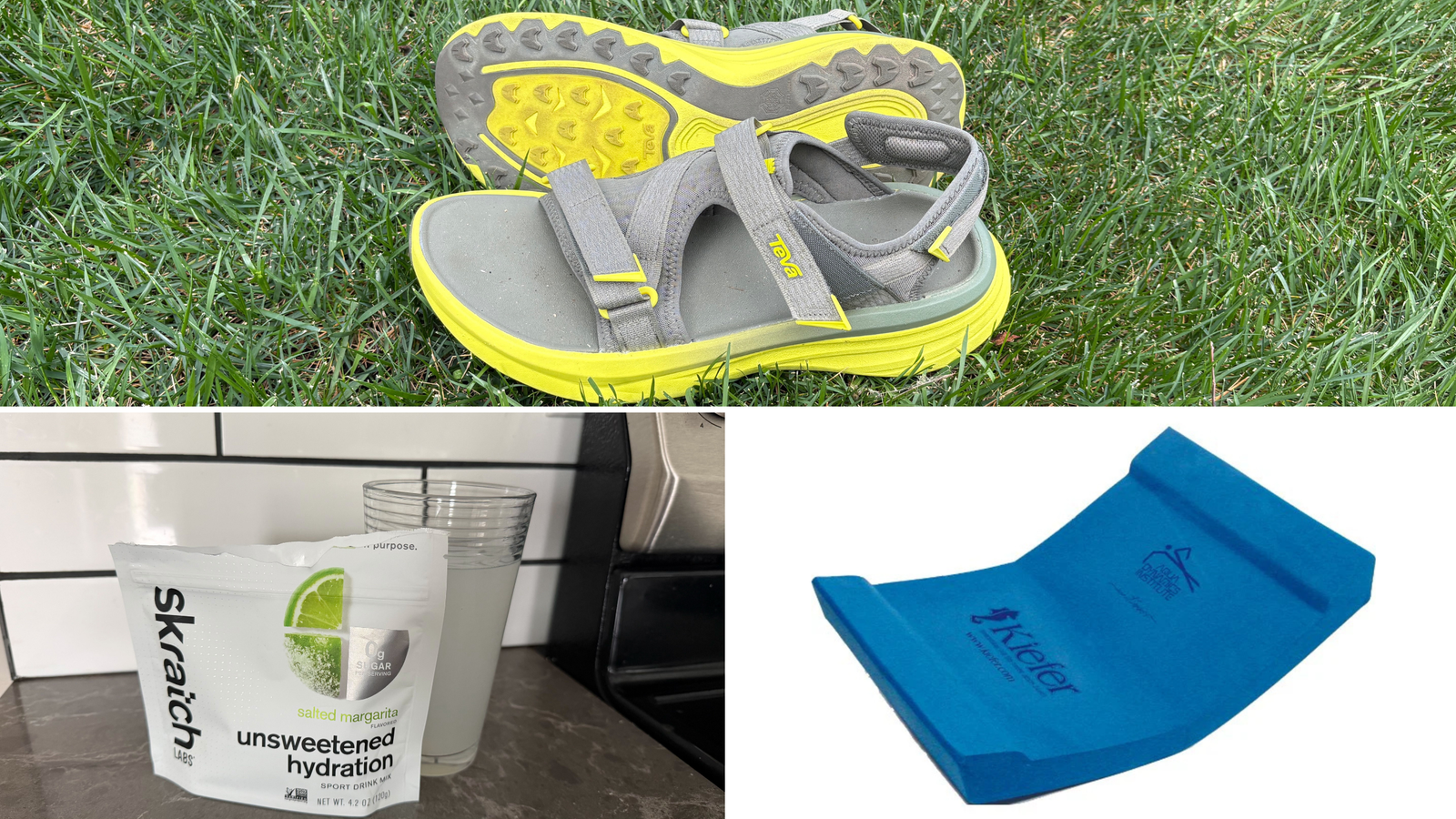 A pair of sandals you can run safely and comfortably in, a new gadget to train your core muscles in the pool, and an unsweetened electrolyte drink mix all made our editors’ list of favorite gear this month. (Photo: triathlete)